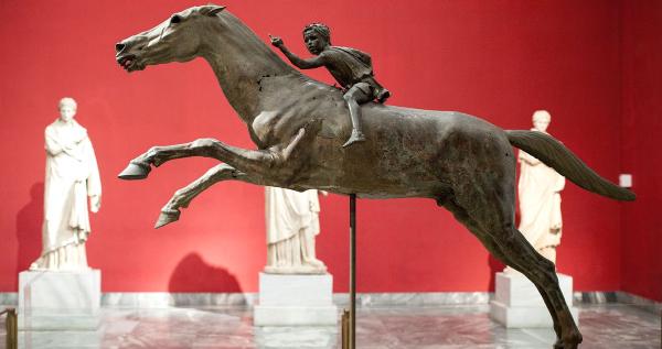 There’s a moment in the National Archaeological Museum when you turn a corner and come face to face with a bronze god hauled from the sea floor — arm cocked, muscles taut, frozen mid-throw for over two thousand years. The Artemision Bronze. It stops you in place. No photo prepares you for the sheer physical presence of it.
